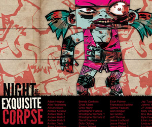 Collaborative gallery show featuring modular zombie paper toys. I designed the paper toy template and an created an interactive gallery installation for the opening reception.
