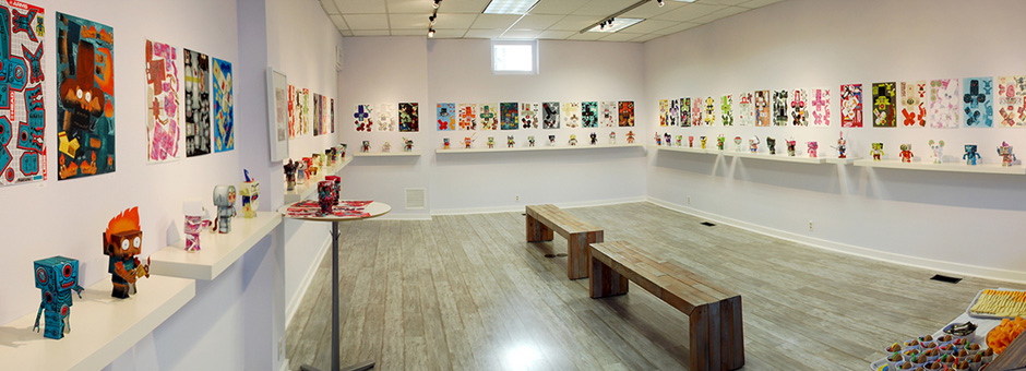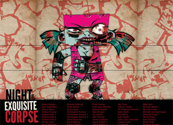 Adam Hoppus approached me about working on a zombie paper toy exhibition. I designed a unique paper toy template that came in 3 interchangeable exquisite-corpse parts. We had over 50 artists participate, creating a wide variety of grim and goofy zombies.